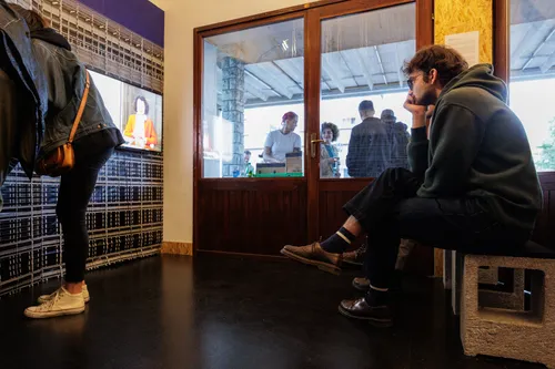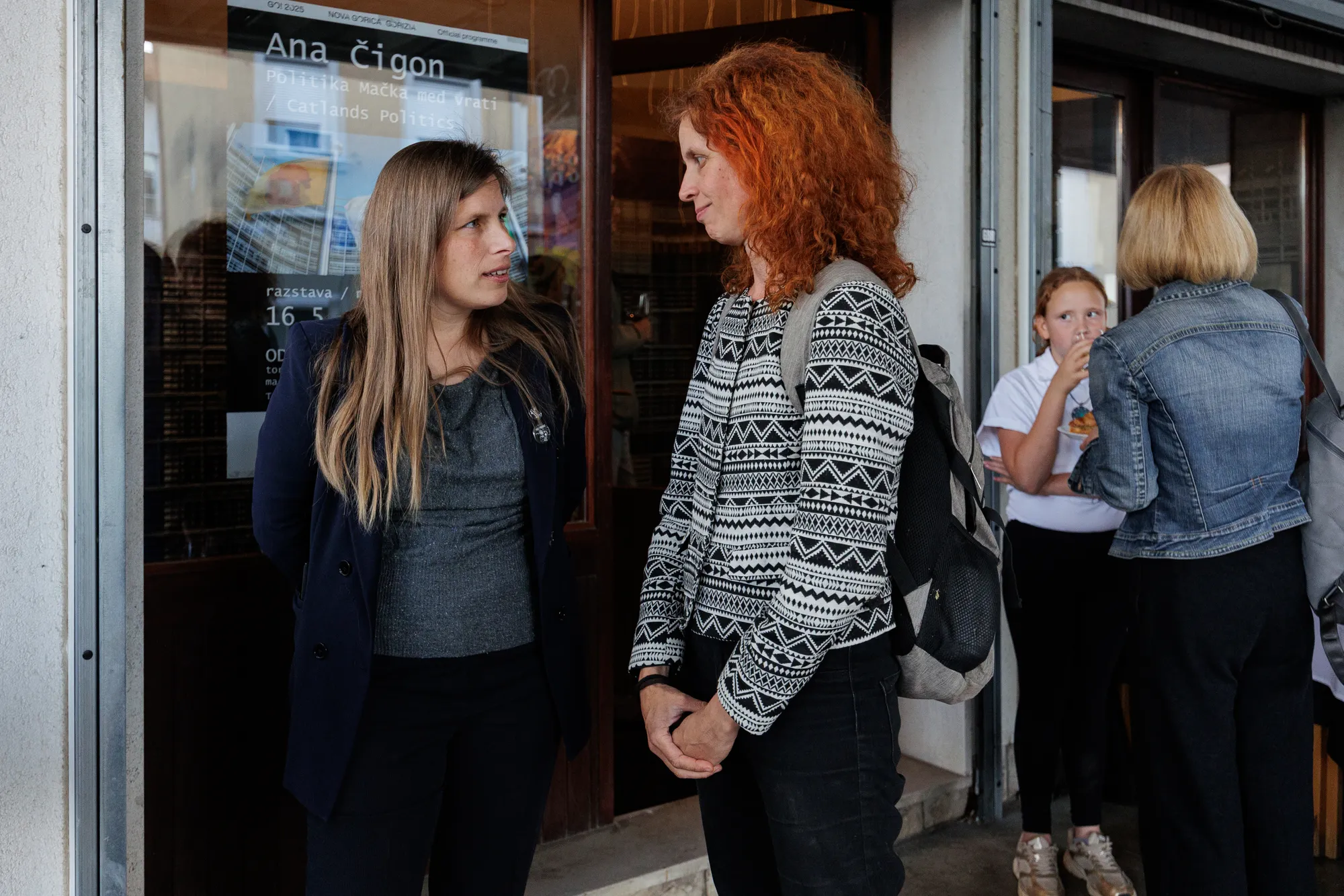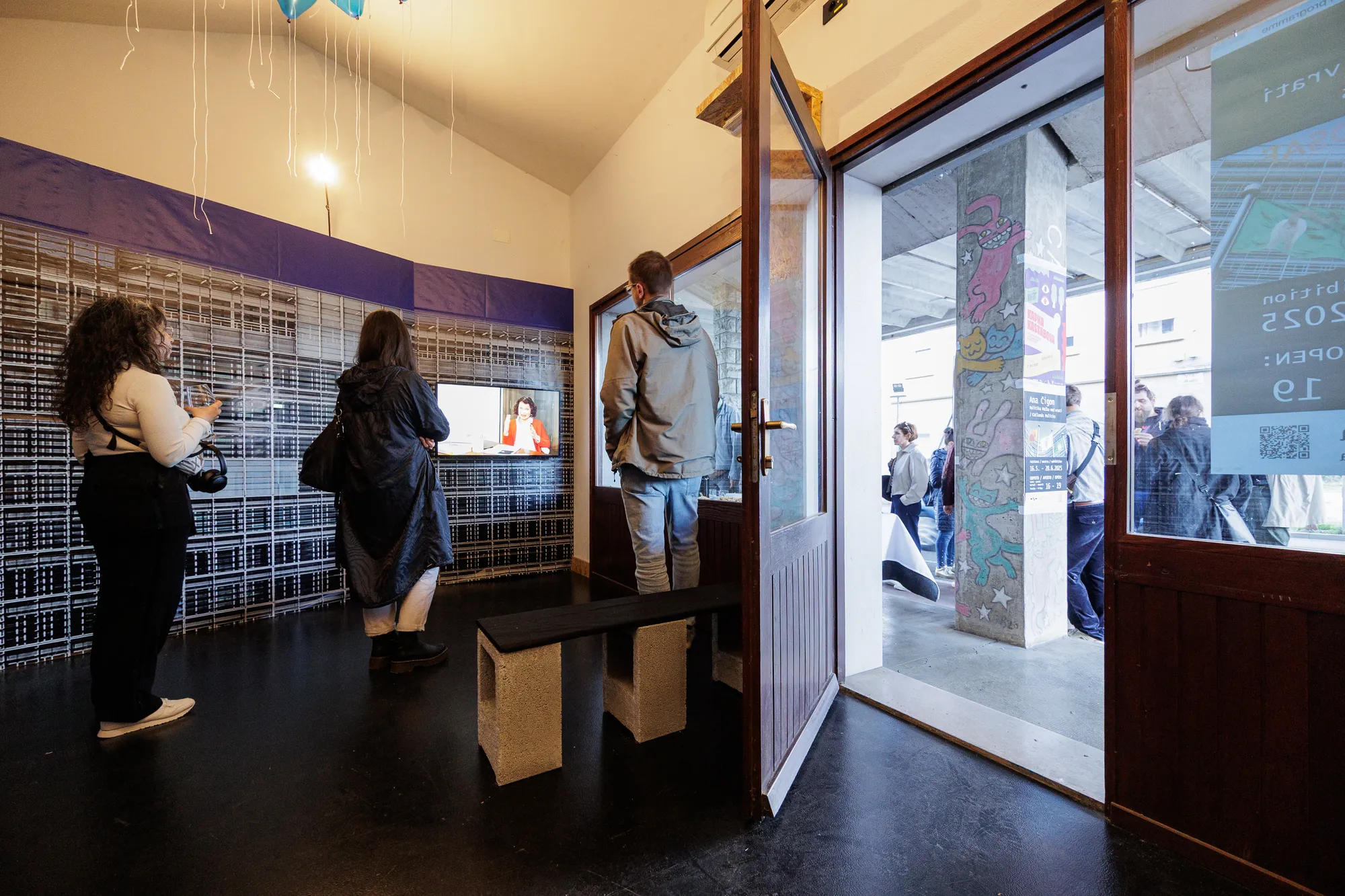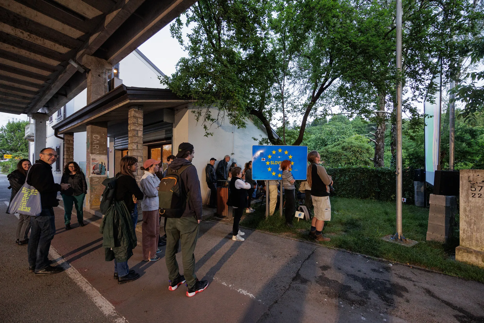 https://www.carinarnica.org/next-eventRazstava Politika Mačka med vrati je na ogled v Carinarnici, kulturnem središču in umetniškem stičišču, ki se nahaja na opuščeni mejni kontrolni točki med Slovenijo in Italijo, ki povezuje mesti Nova Gorica in Gorica. Razstava razkriva kruto realnost evropske ekskluzivne politike. Režiserka in vizualna umetnica Ana Čigon v razstavo vpleta elemente svoje najnovejše animacije Maček med vrati in video pogovore, v katerih se s strokovnjakinjami pogovarja o evropski begunski politiki.