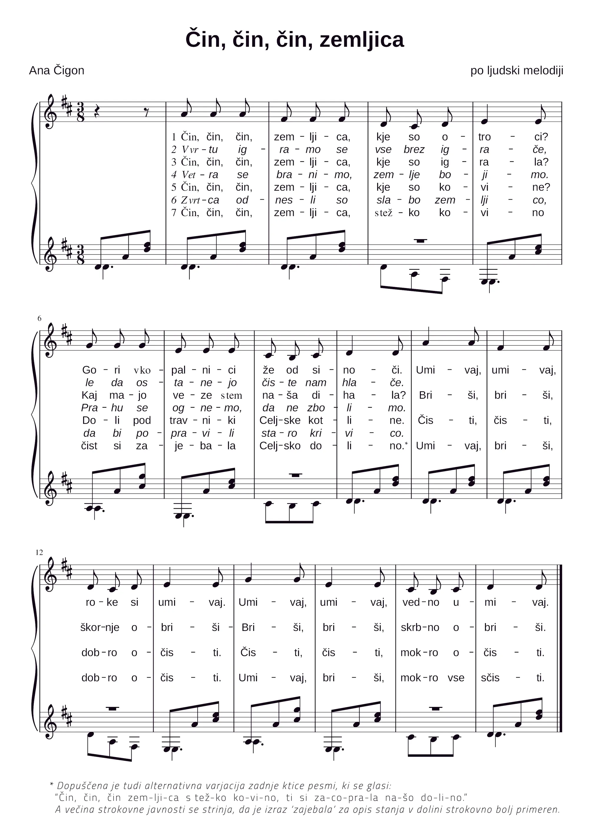 Izdelava zapisa pesmi: Vasja Progar