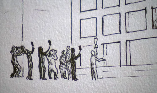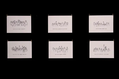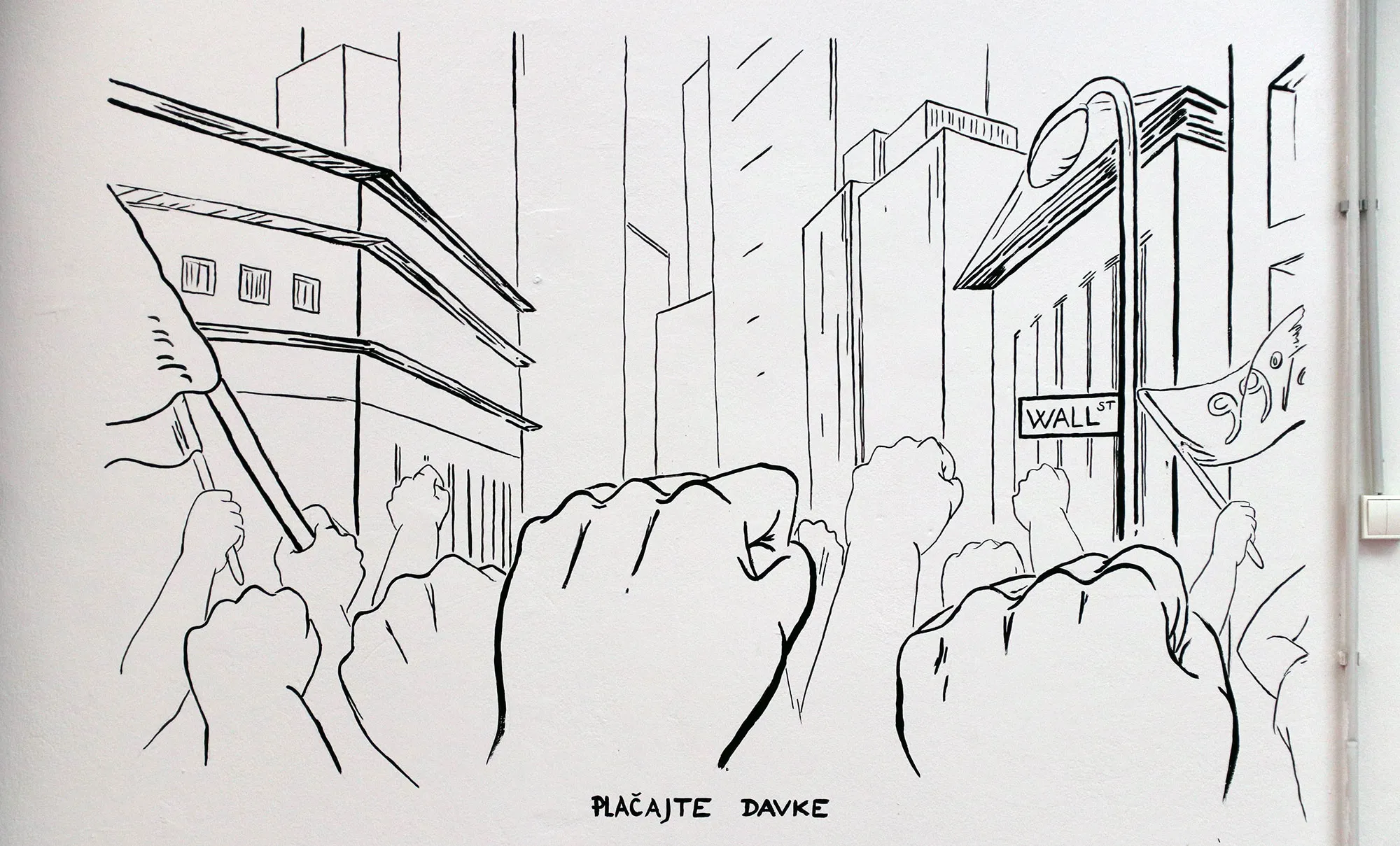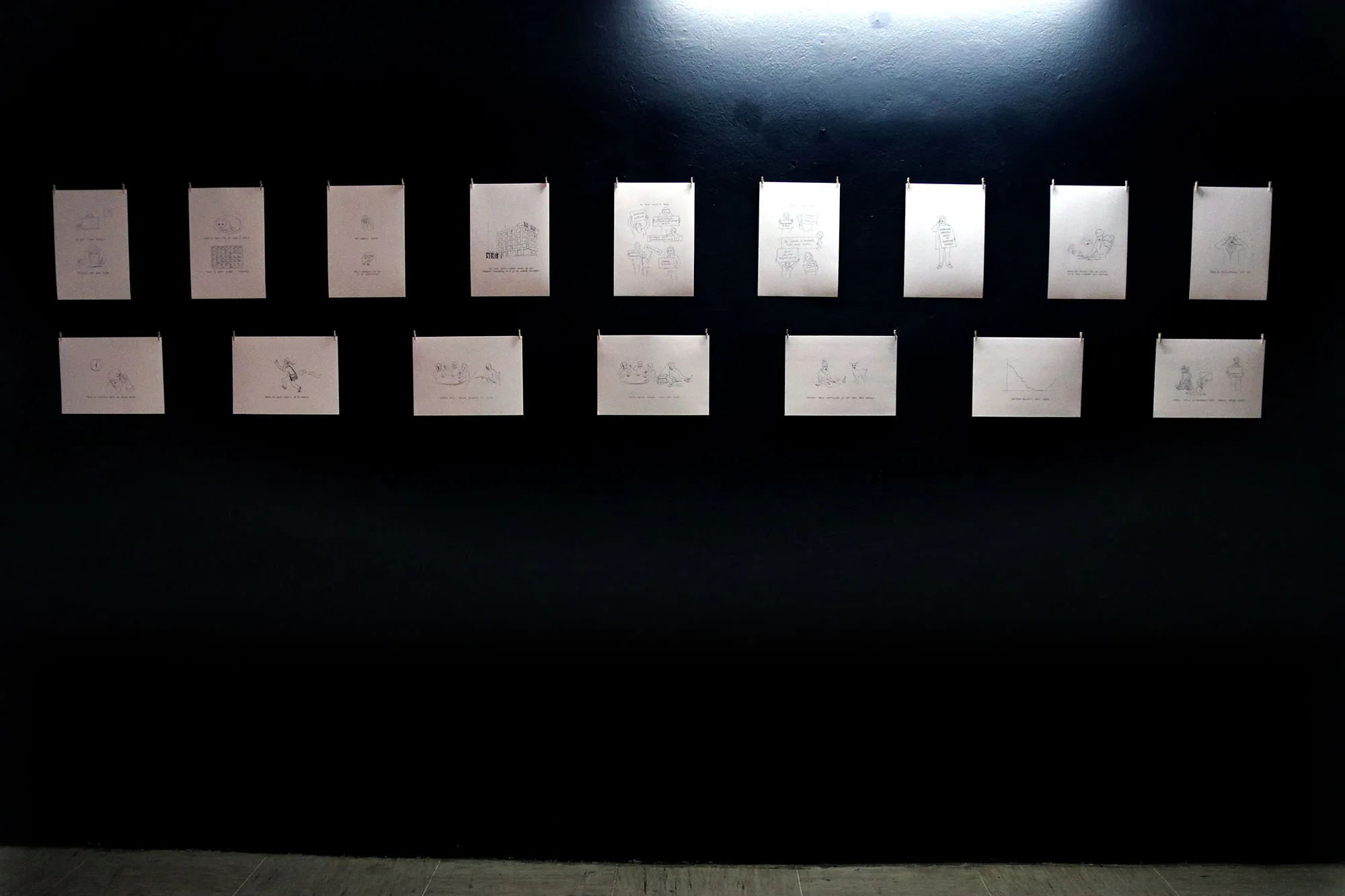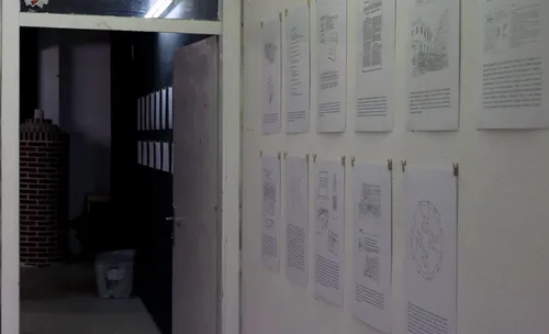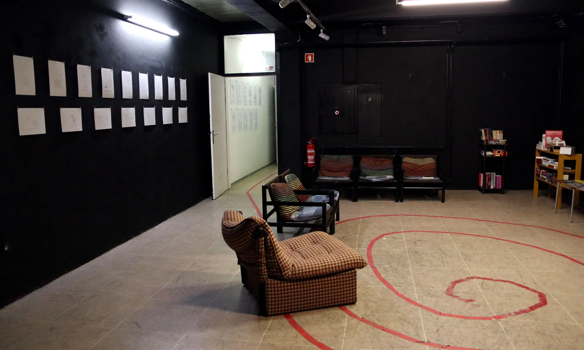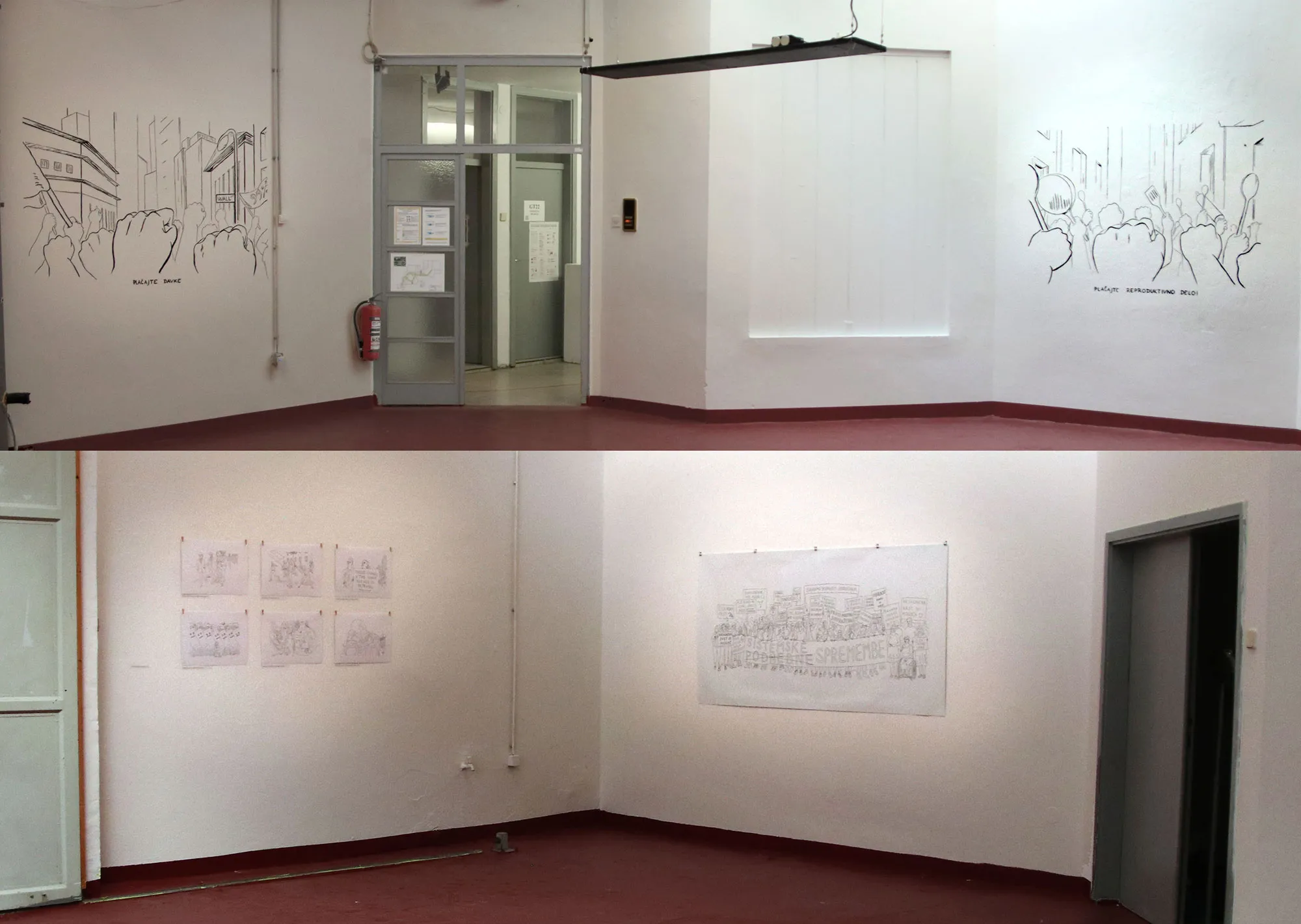 Razstava. Risbe na papir in na steno, video, knjige in performans